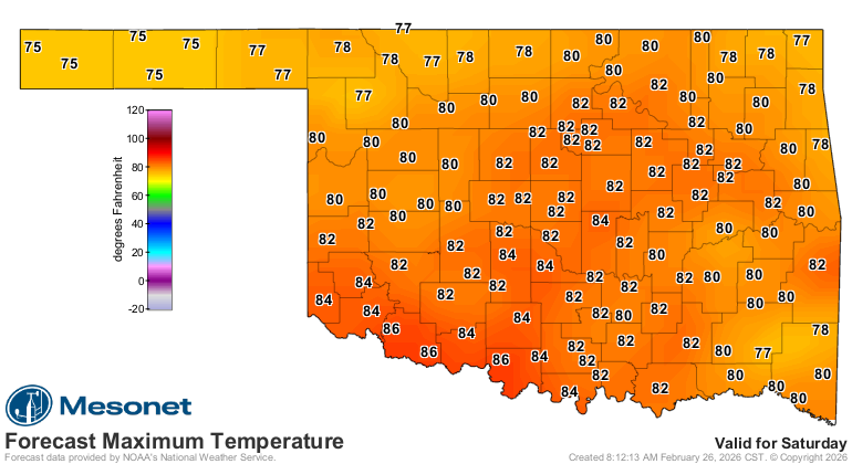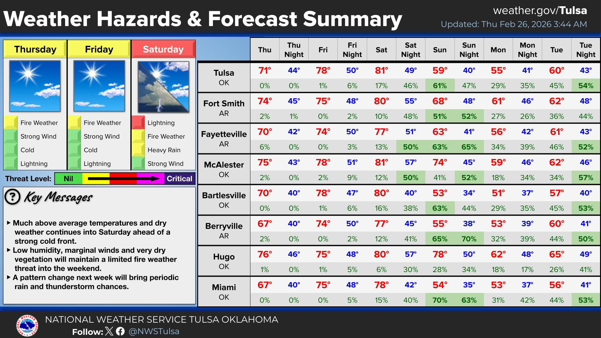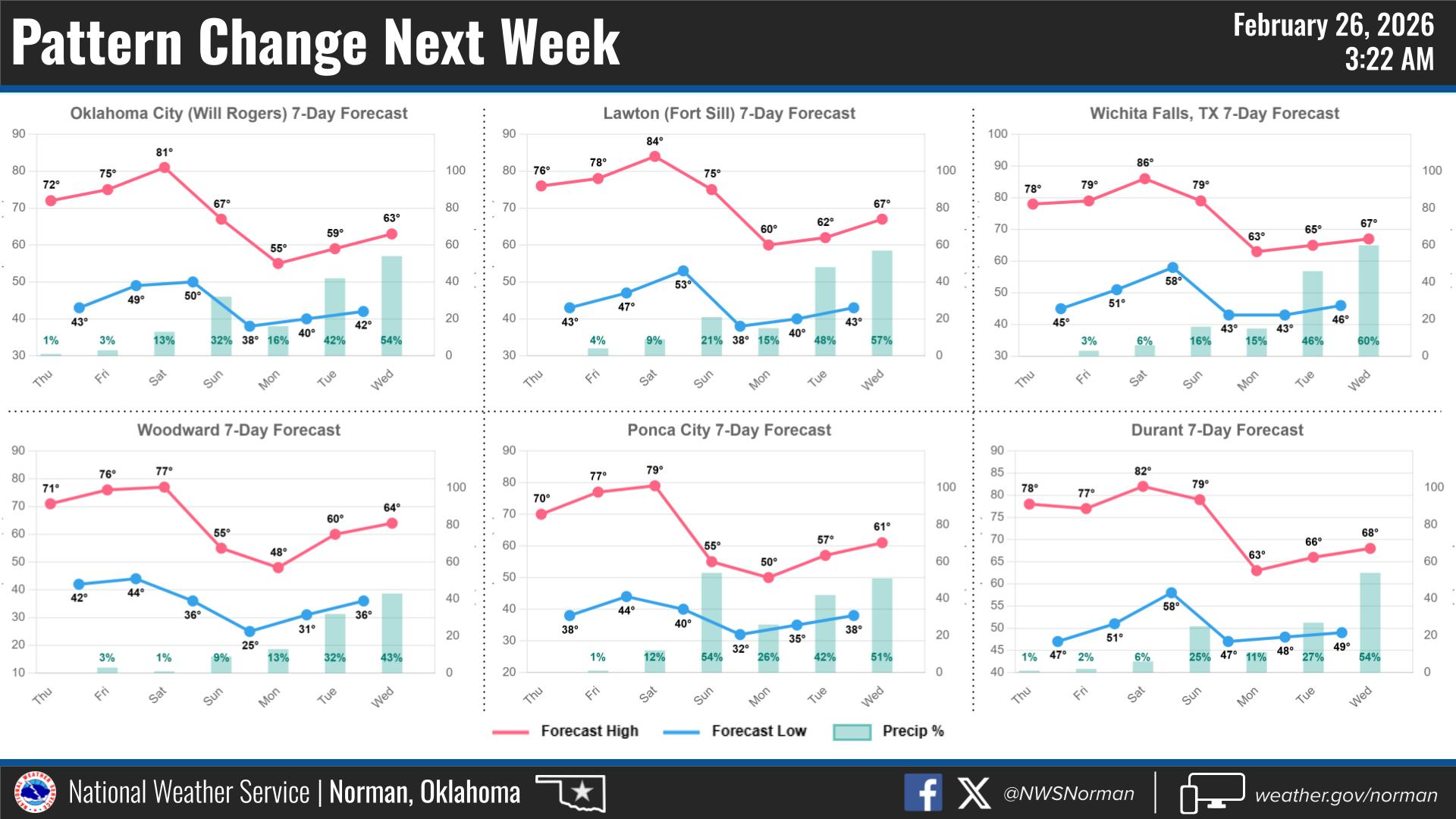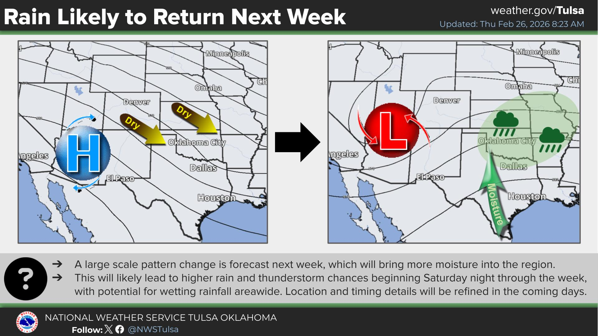 And you can see those rain chances going up next week in NWS Tulsa's 7-day.
