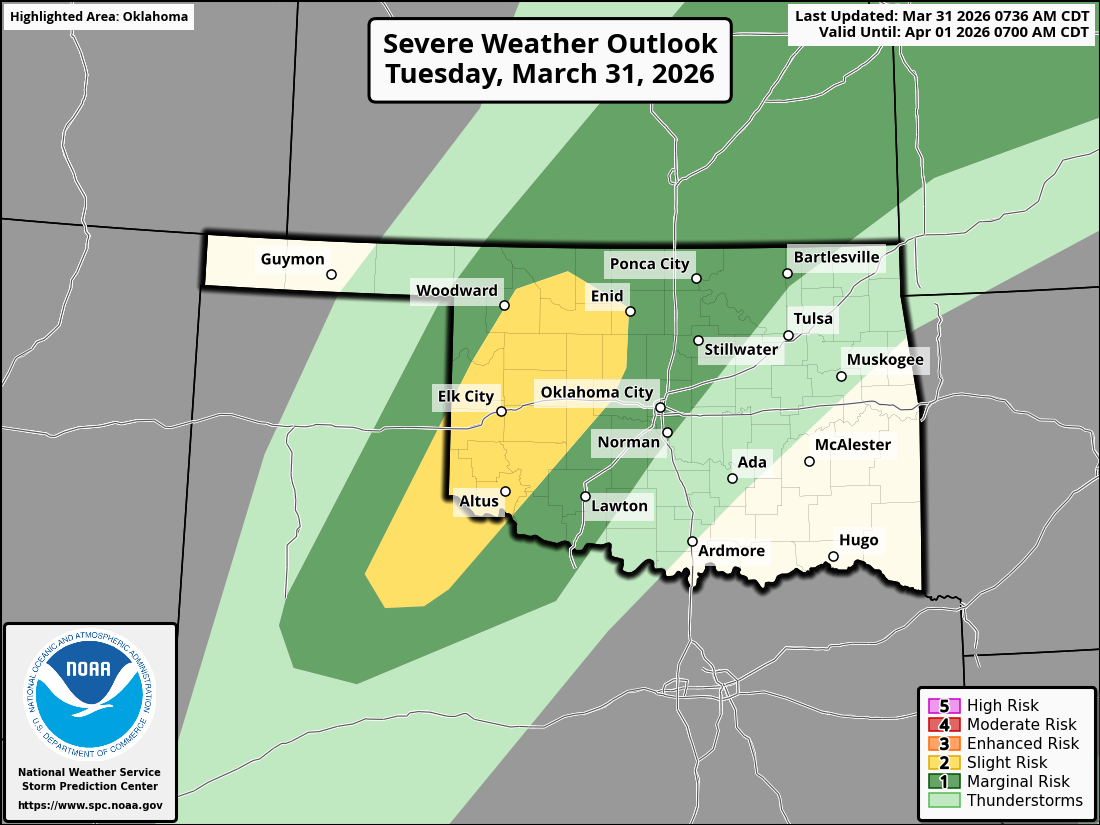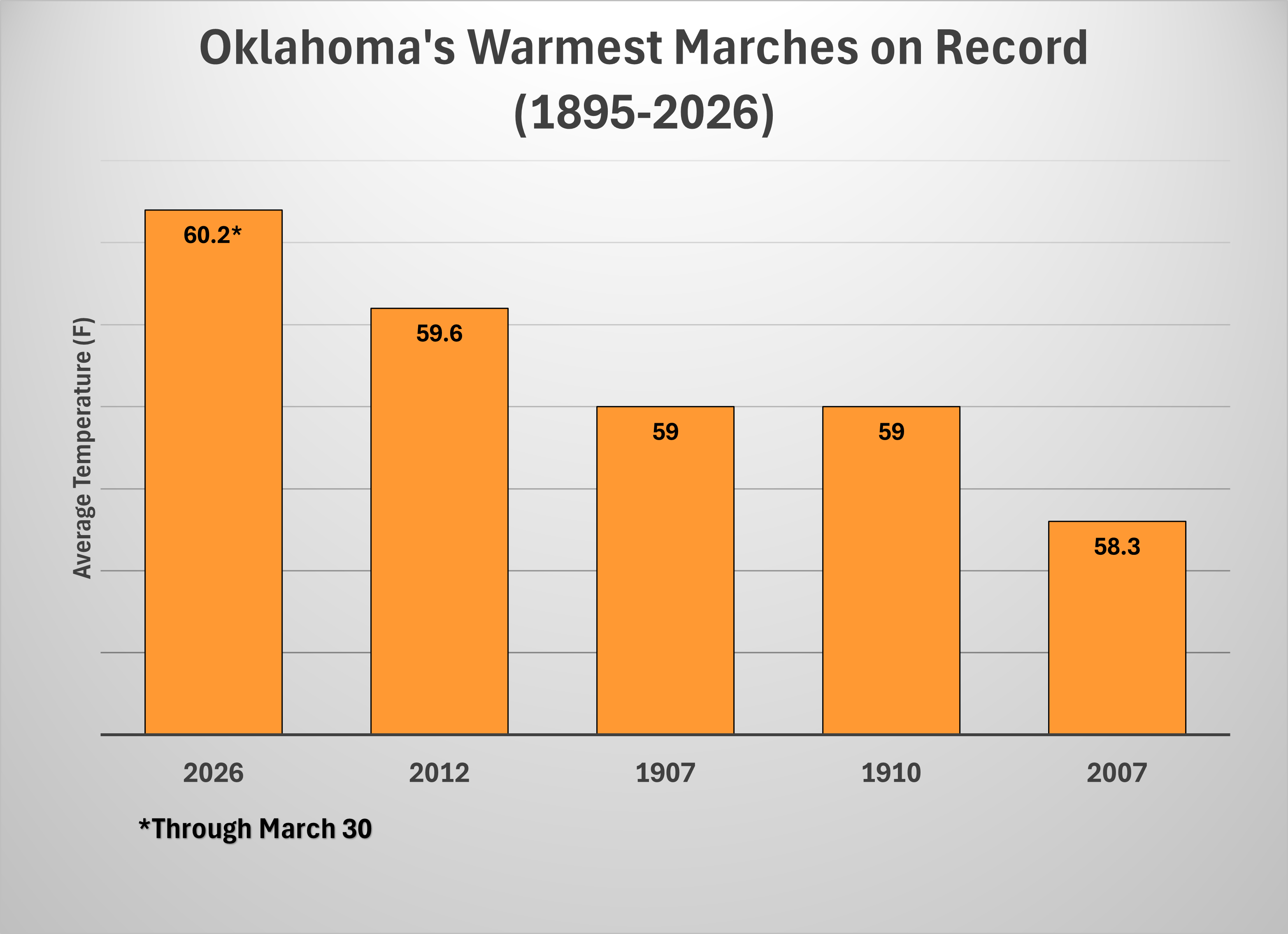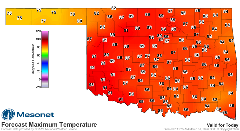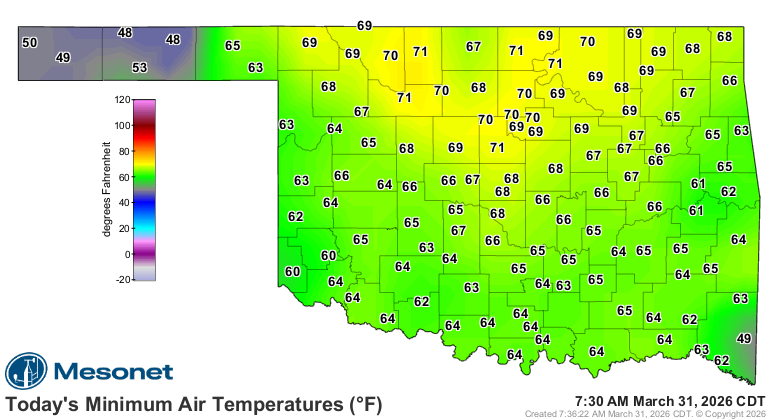 tie for the highest minimum temperature on record for a March 31 in Oklahoma