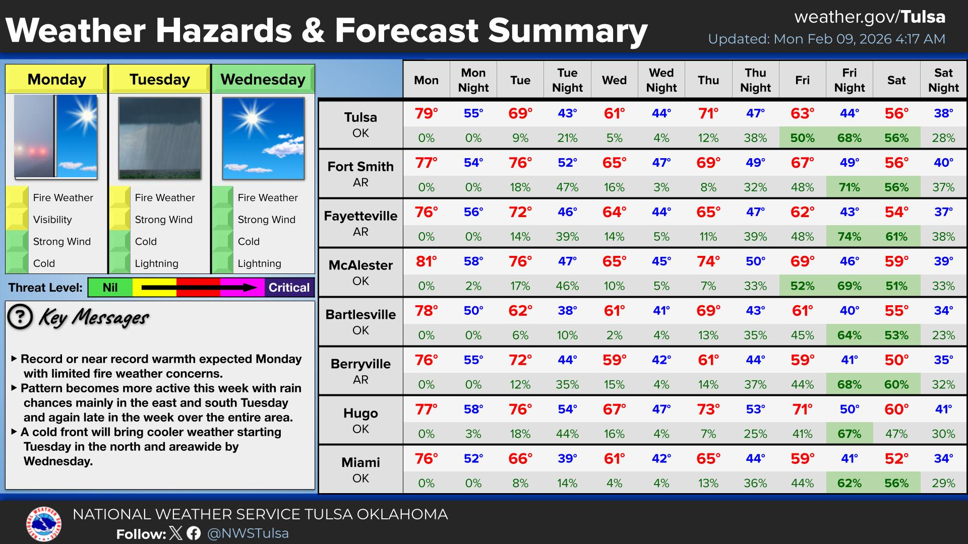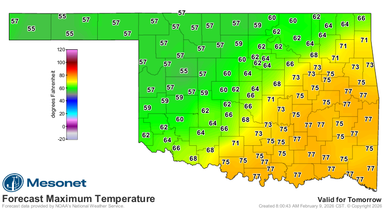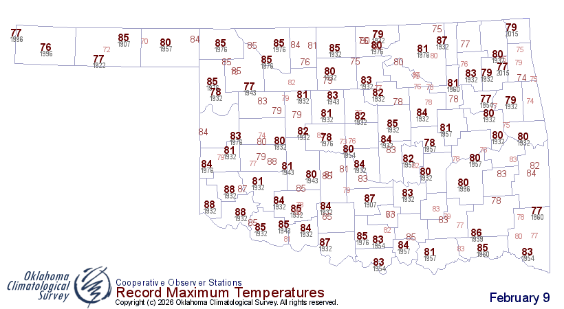 Oklahoma, almost reaching the top spot of 85 from Hollis in 1950. And today will
