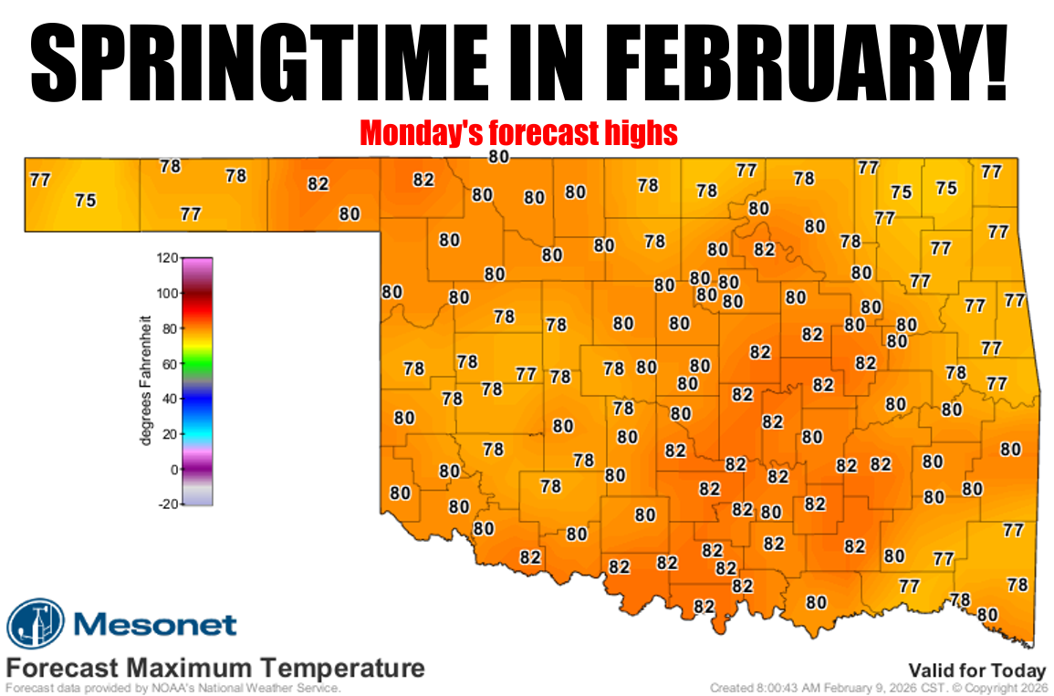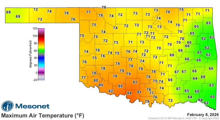in Waurika is the second-highest temperature ever recorded on a Feb. 8 in