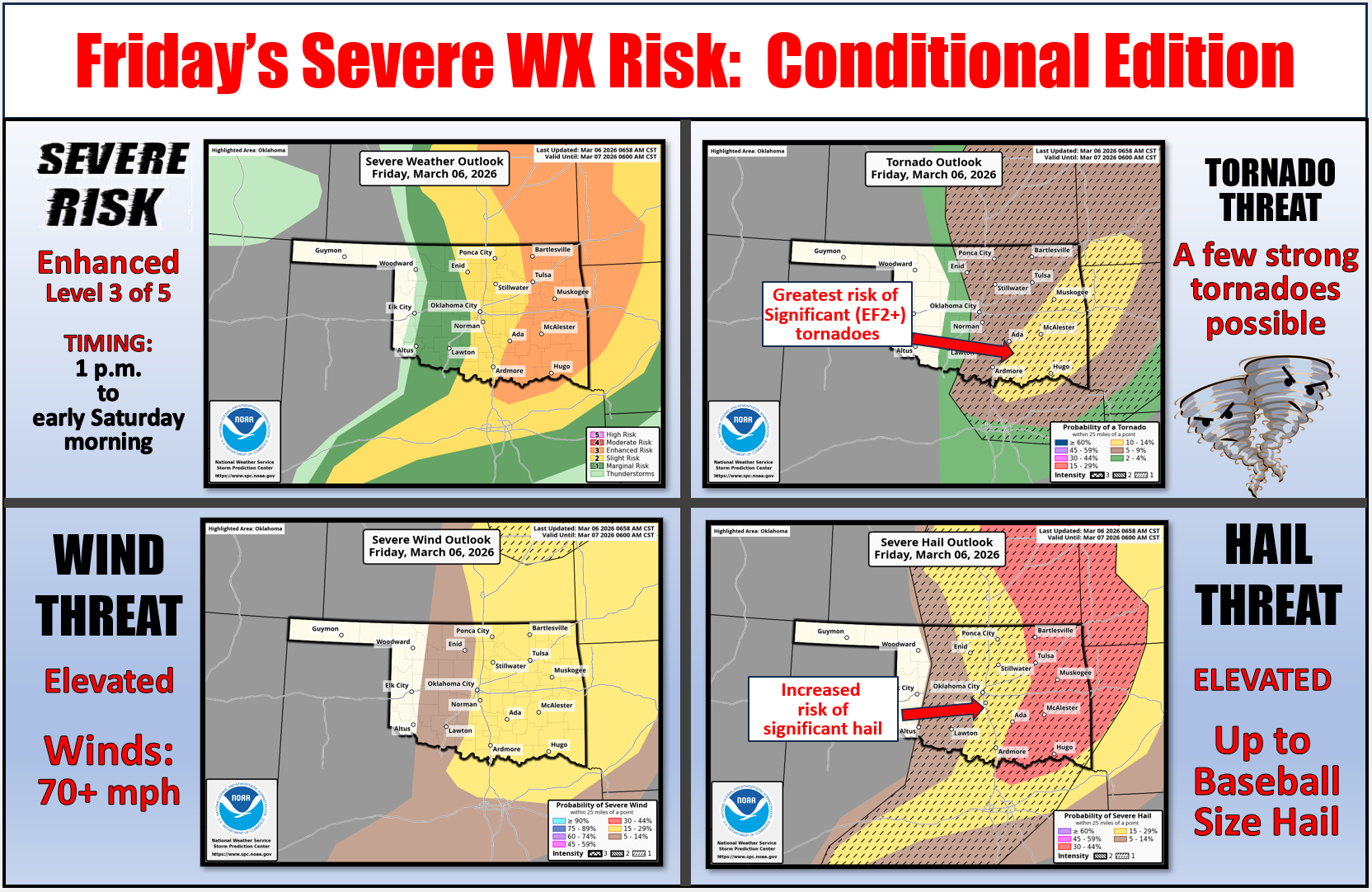 risk of large hail up to the size of baseballs, winds of 70 mph or more, and a