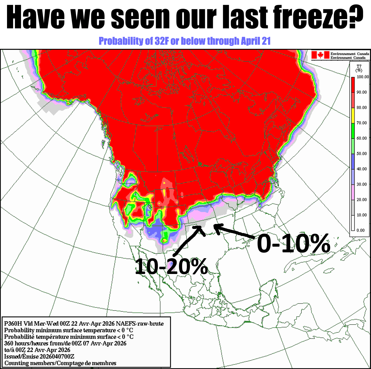 Chances we've had our last freeze? 90% maybe? 100%? 87.5%