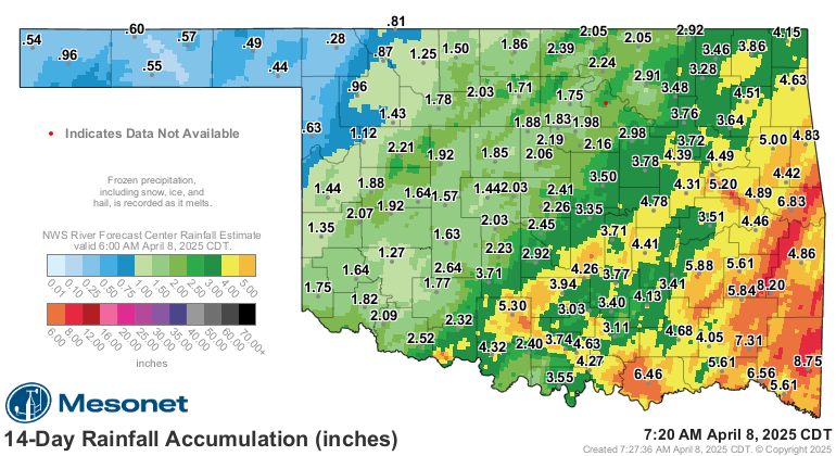Now obviously we need more rainfall, especially there in NW OK where an inch or