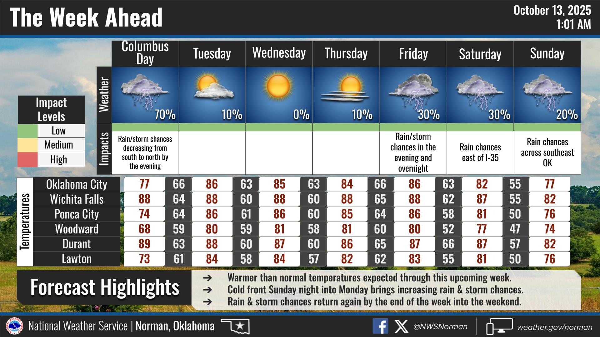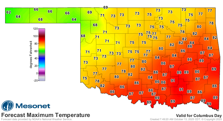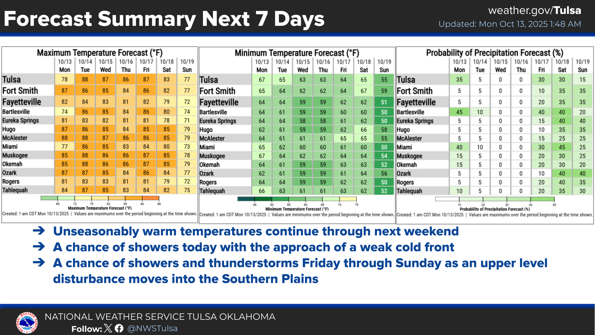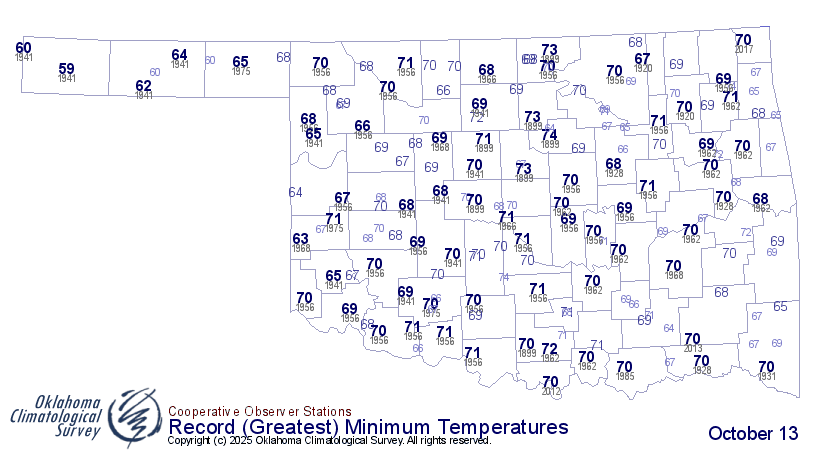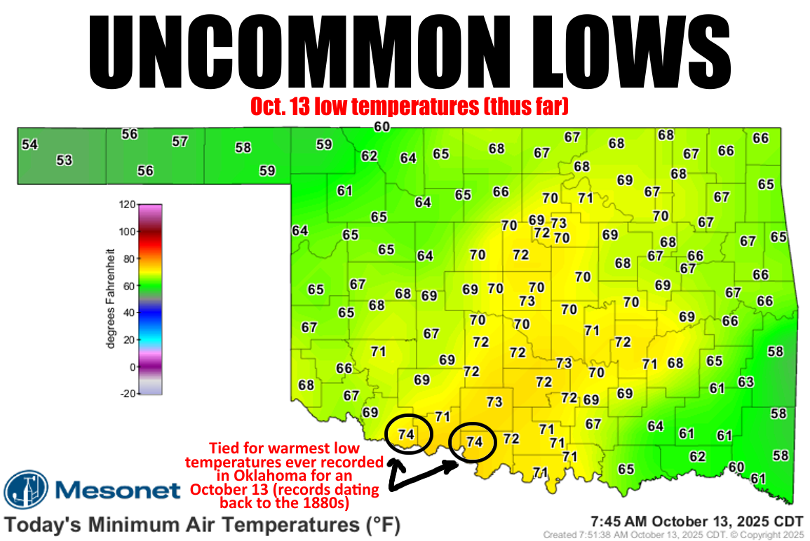 the warmest high Tmins on record for an Oct. 13 in Oklahoma, and those records