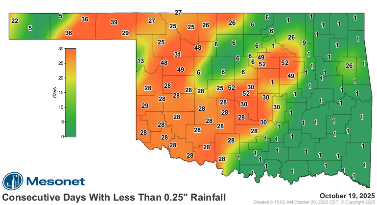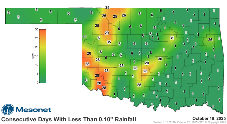 Panhandle...first time we've seen 32 or below in Oklahoma since May 3, to be