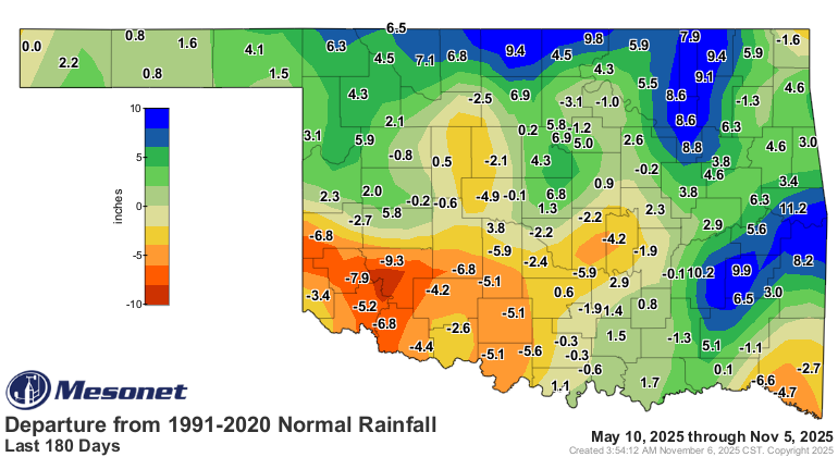 Things don't look so bad outside of SW OK at that 180-day period, but the rains