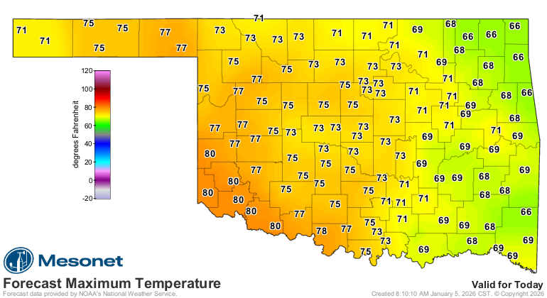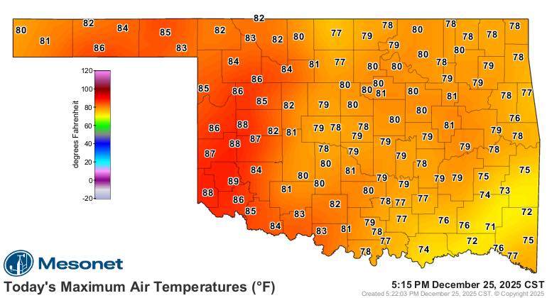 The Oklahoma Mesonet site at Mangum recorded 89 degrees on Christmas Day, the