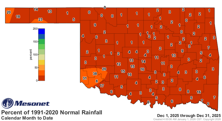 Oklahoma fared even worse, each recording their driest December on record with