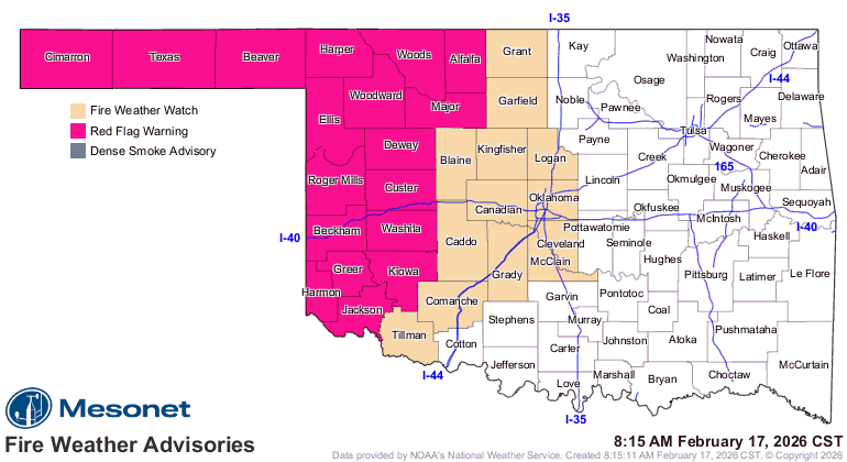 across the Oklahoma Panhandle, Northwestern counties and
