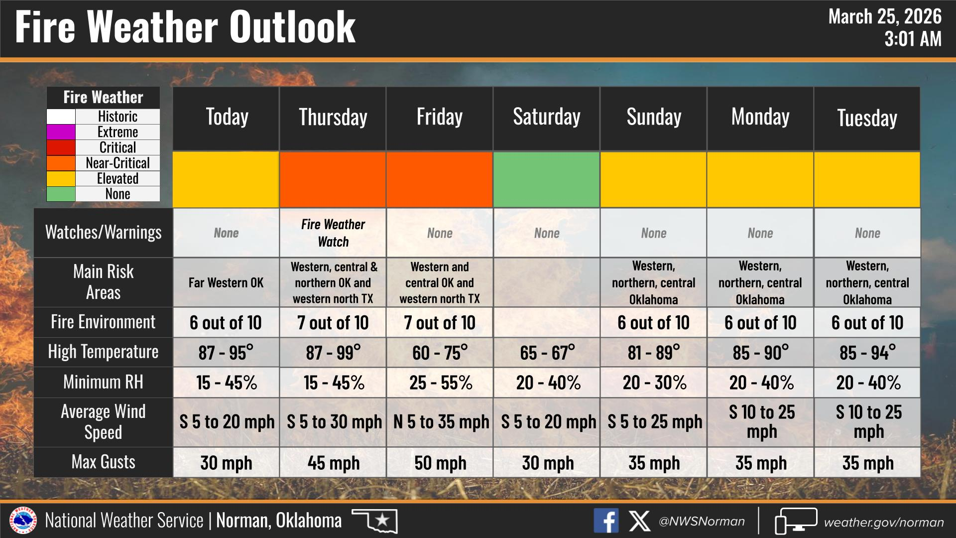 Significant fire potential returns noting that less-tan-critical fire weather