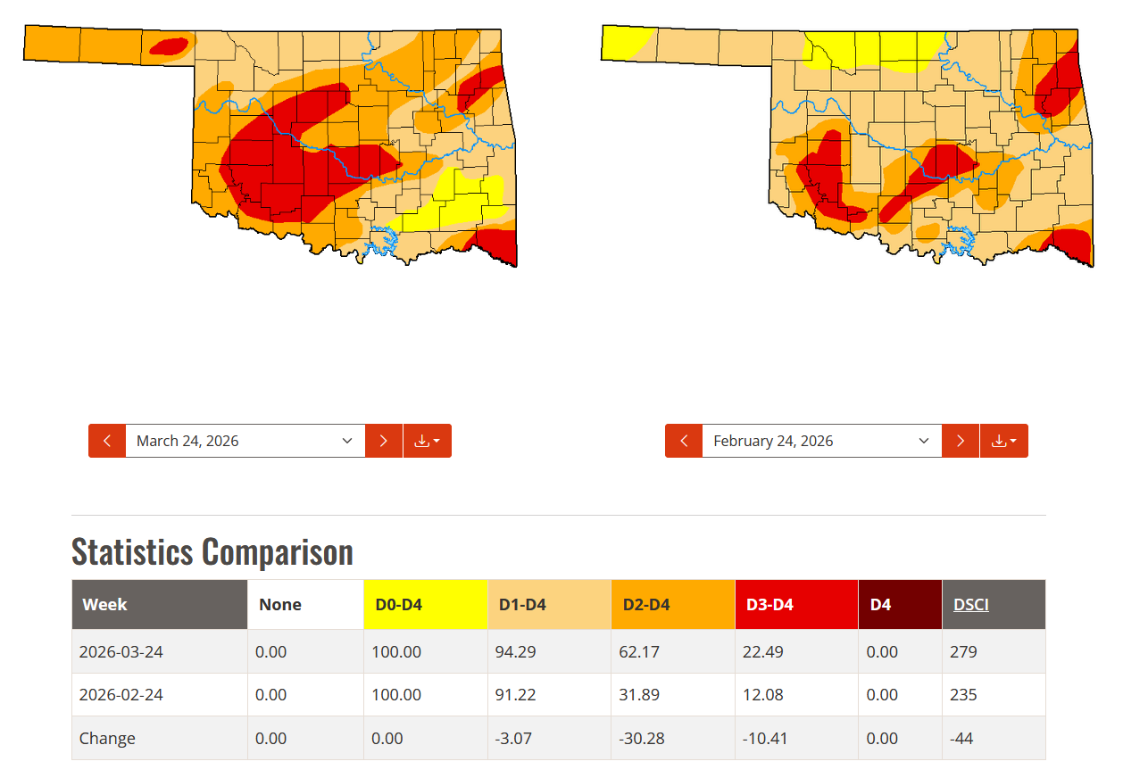 Below-normal rainfall during March helped drive worsening drought conditions