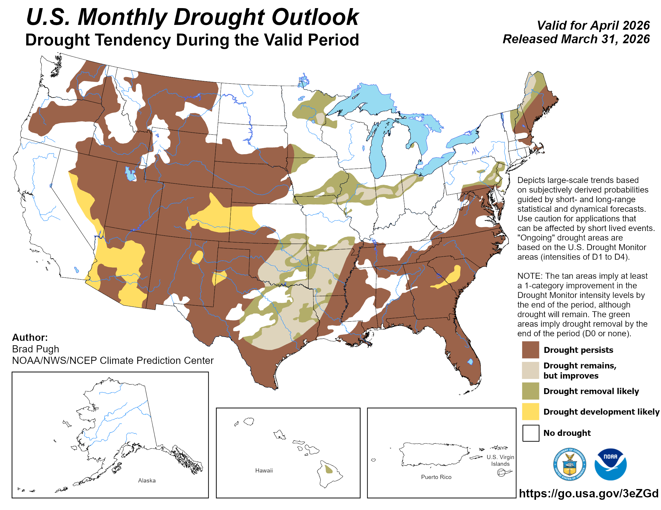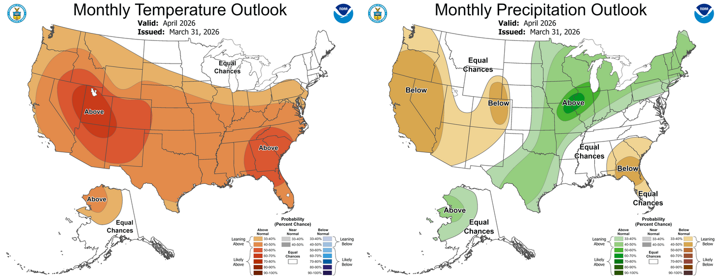 The Climate Prediction Center’s (CPC) April outlook indicates increased odds of